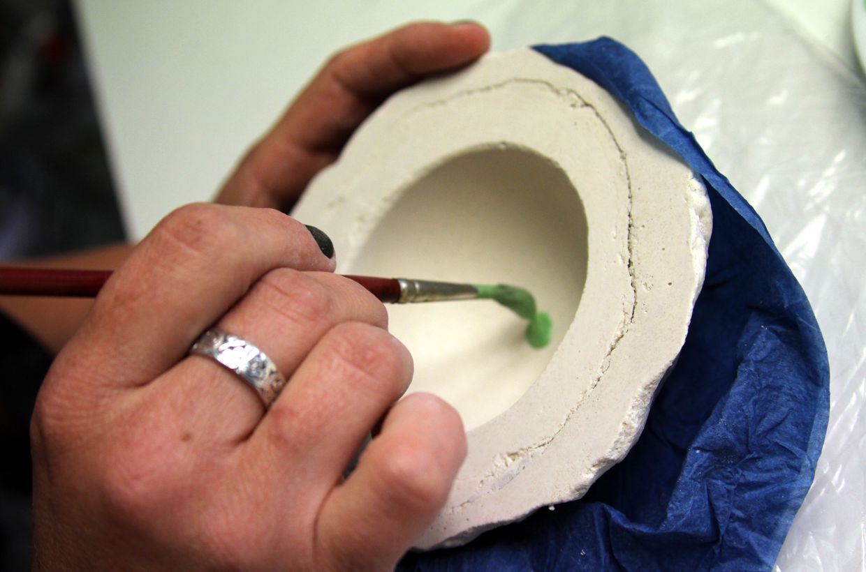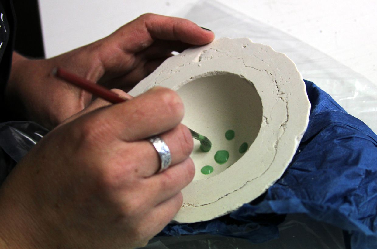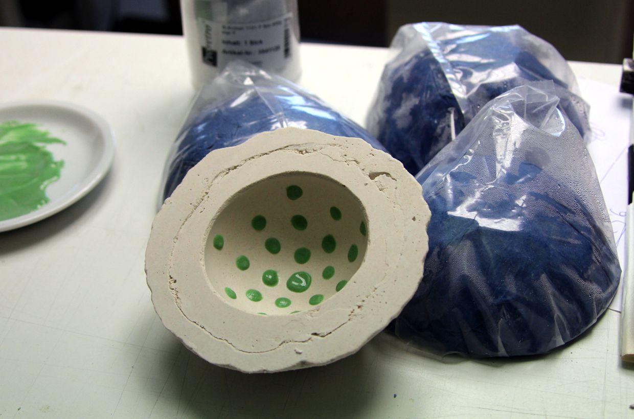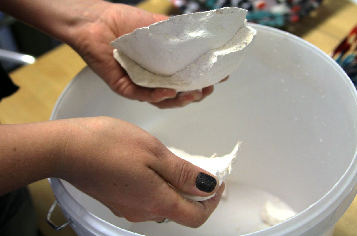 Alternatively, you can simply put the molds completely in a bucket of water. The mold material then dissolves and the bowls can be easily removed from the mold.