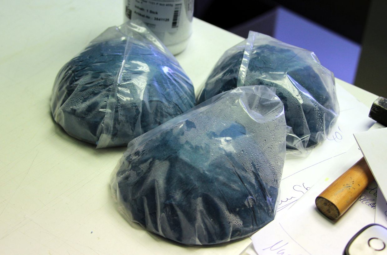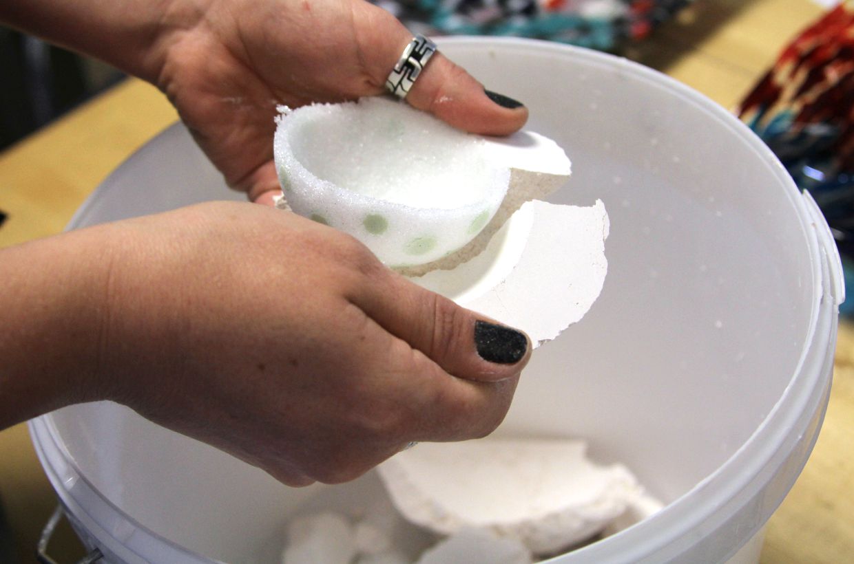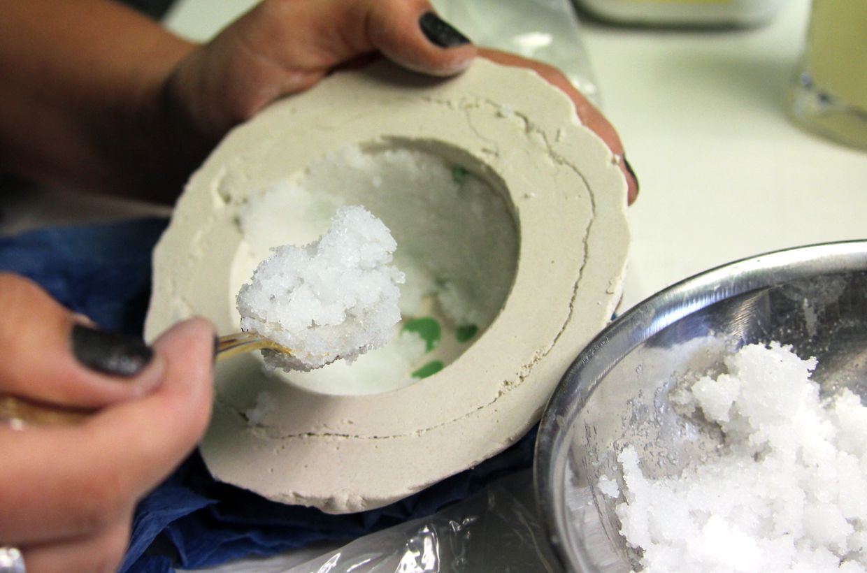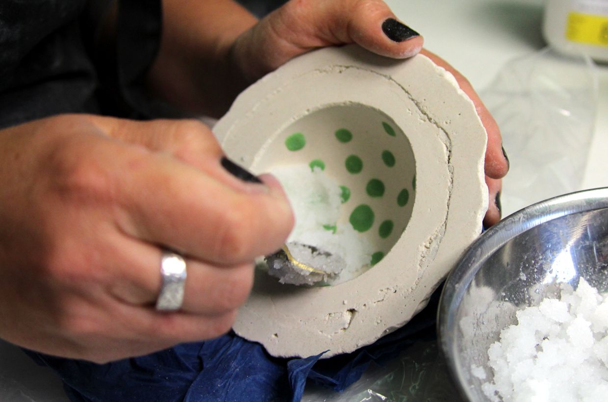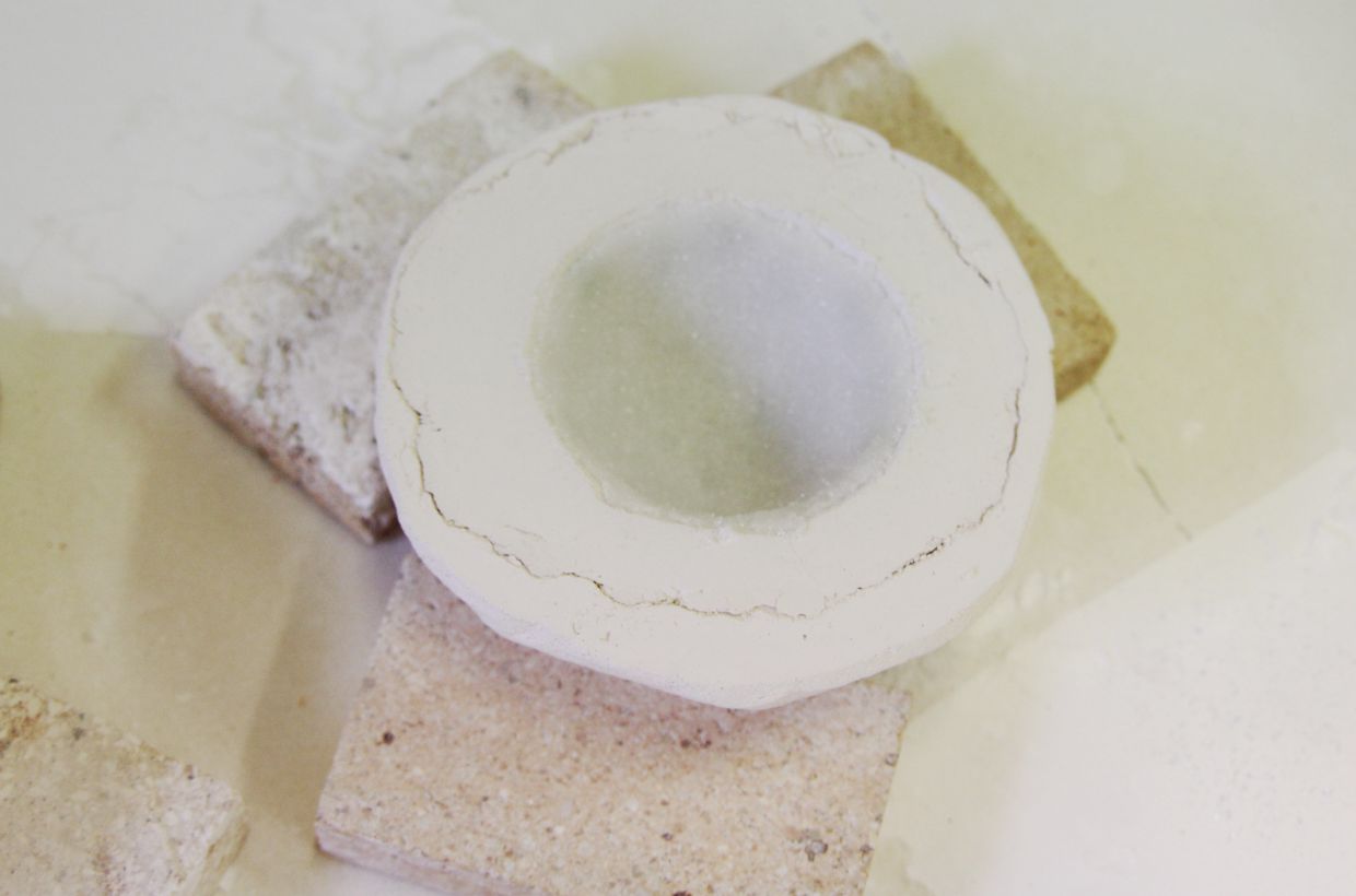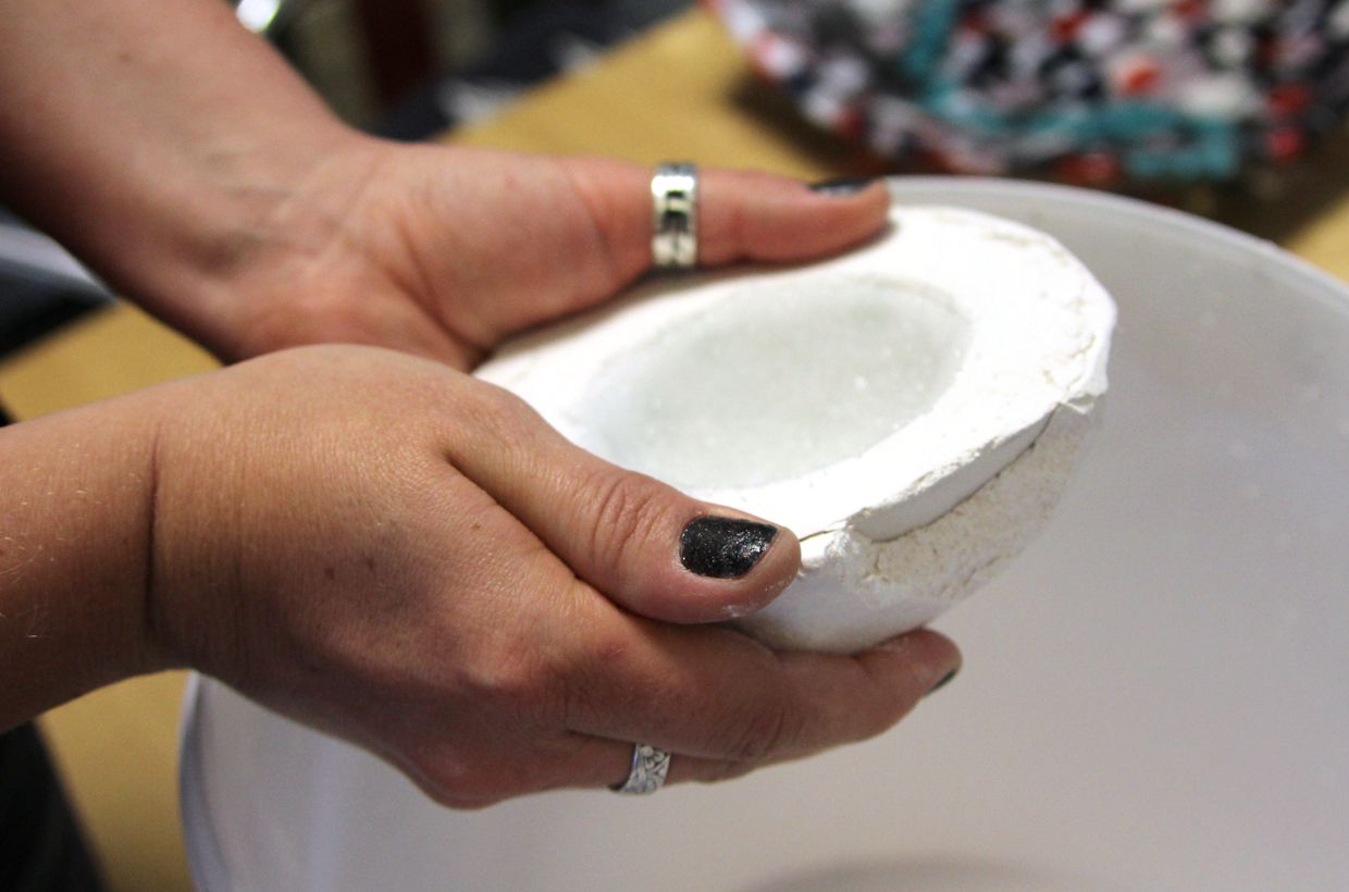 After melting, the bowls are carefully removed from the mold. The material is very easy to break and the 2 layers of mold material allow the bowls to be carefully removed from the mold.