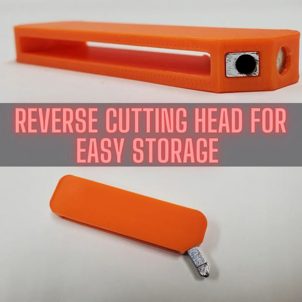 Glas schneiden mit dem Flash Break: Stecken Sie einen Schneidkopf ( SCG-10 oder Toyo10 ) in die viereckige Fassung. Schon haben Sie einen regulären Glasschneider. Nach Gebrauch ziehen Sie den Kopf aus der Fassung und stecken ihn mit dem Rädchen zuerst wieder rein. So ist der Kopf bis zum nächsten Einsatz gut aufbewahrt.