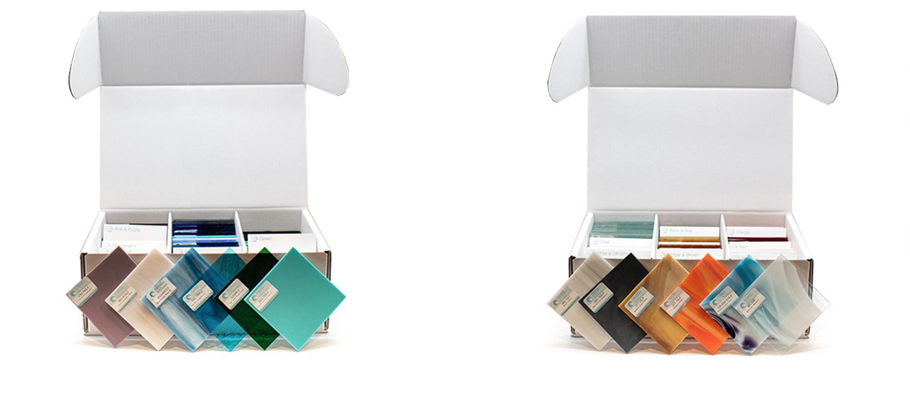 Für alle, die eine große Auswahl in kleineren Formeten suchen, bietet Oceanside sogenannte RackPacks an. Dies sind kleine schöne und stabile Holzkisten mit 80 Scheiben im Format 30x30cm. Eine großartige Vielfalt an großartigem Glas!