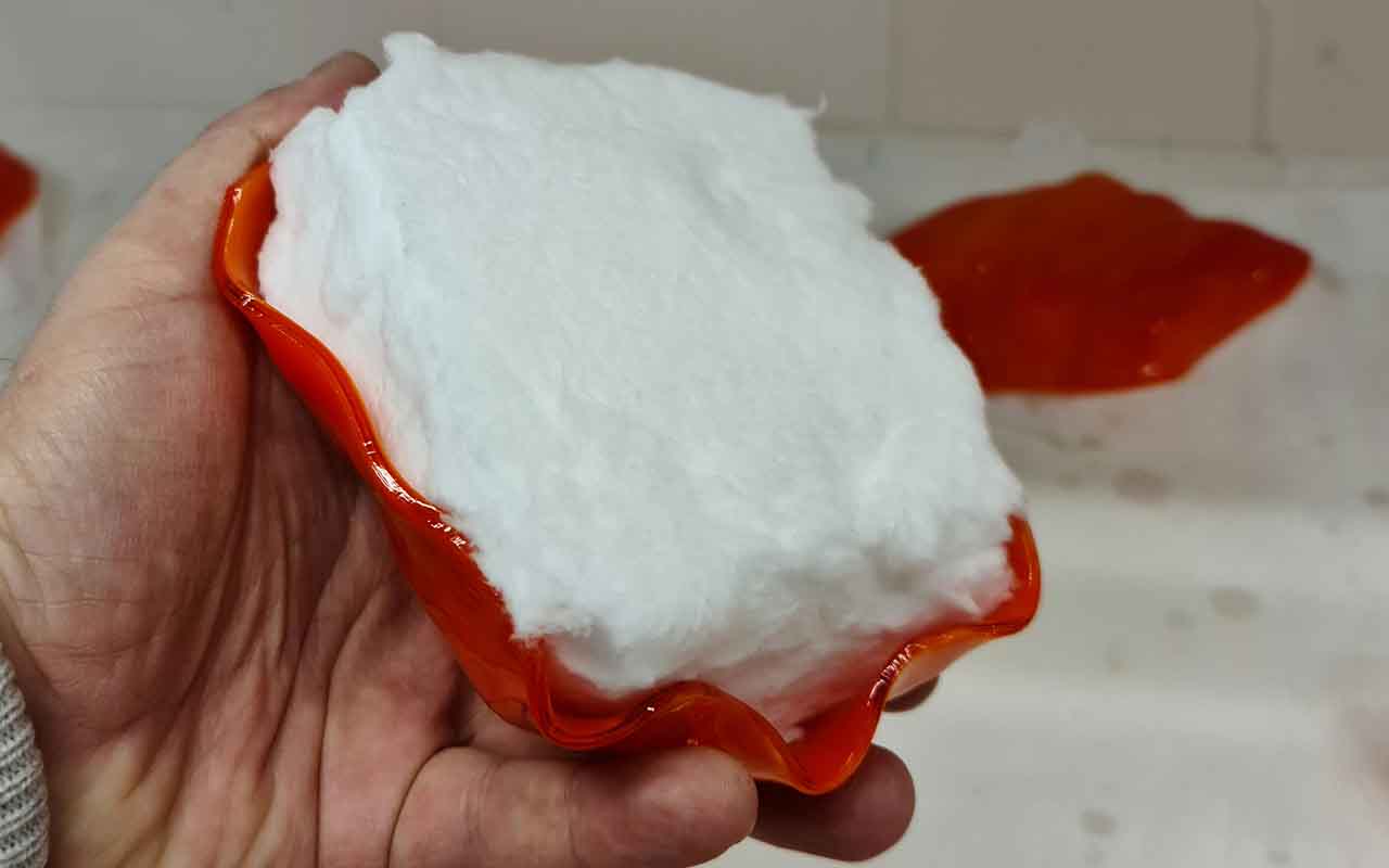 Nach dem Brennvorgang die Glasteile von der Faserwolle reinigen.