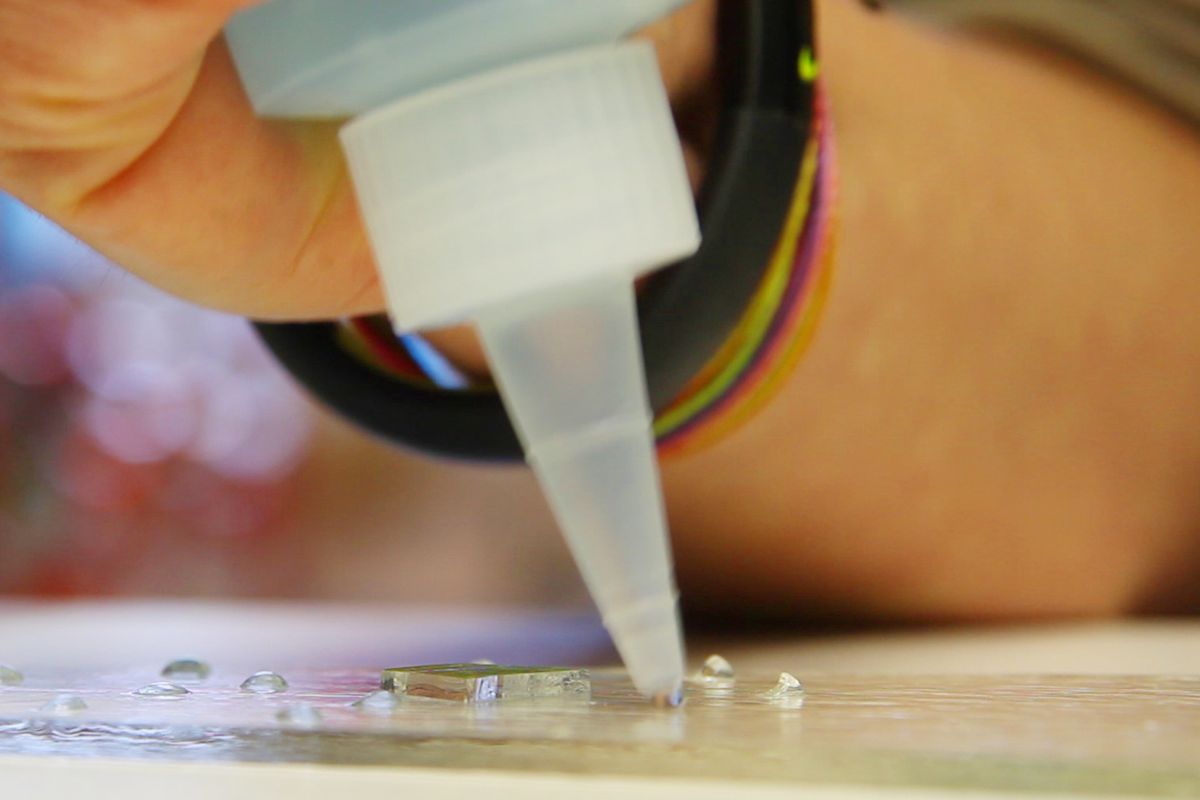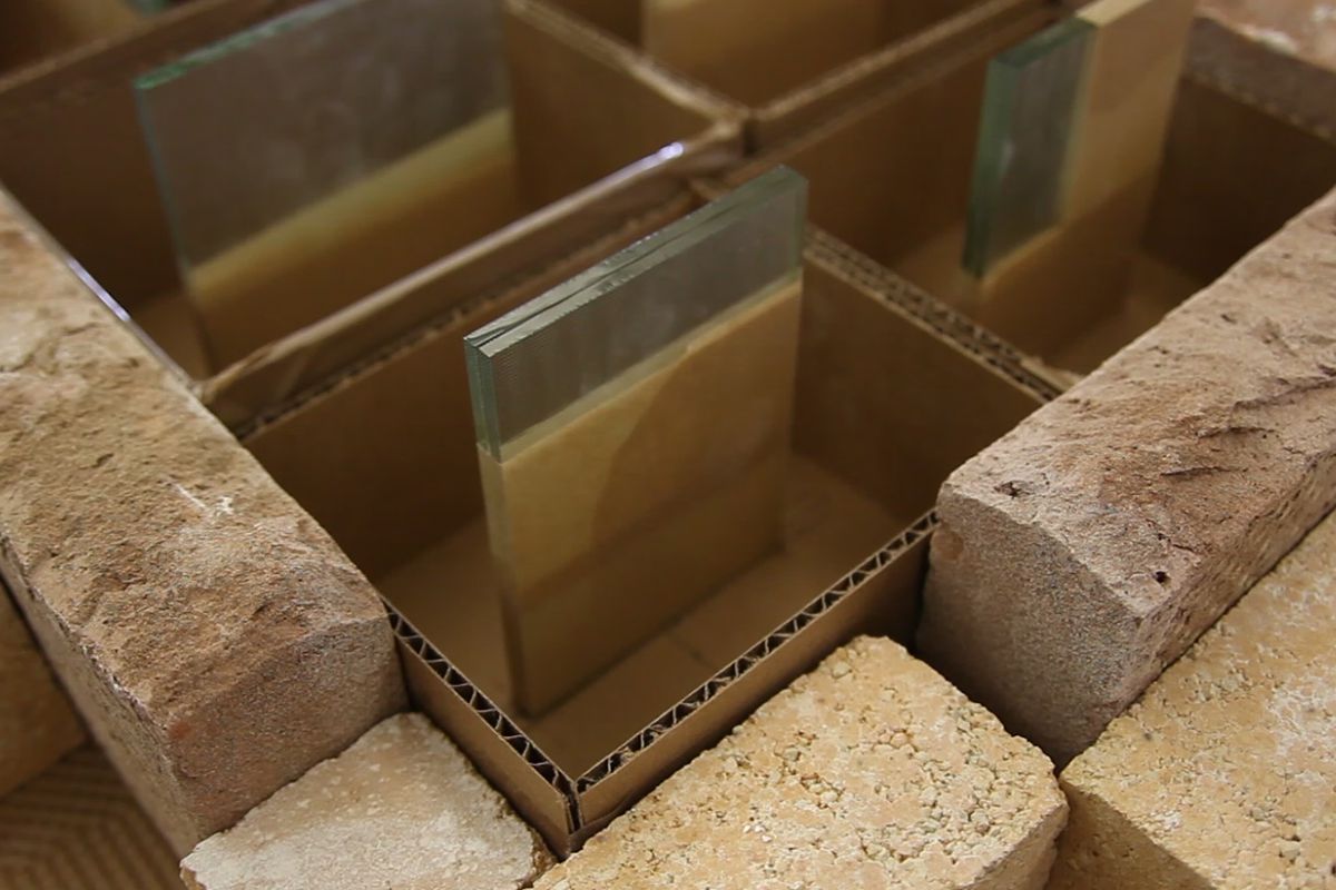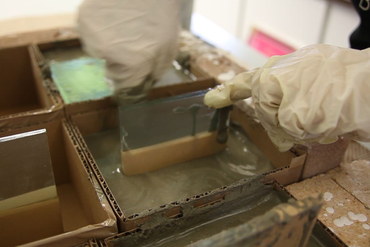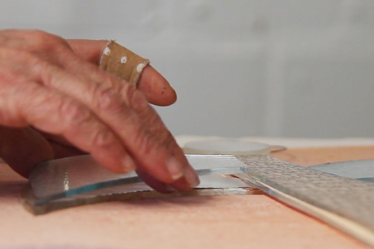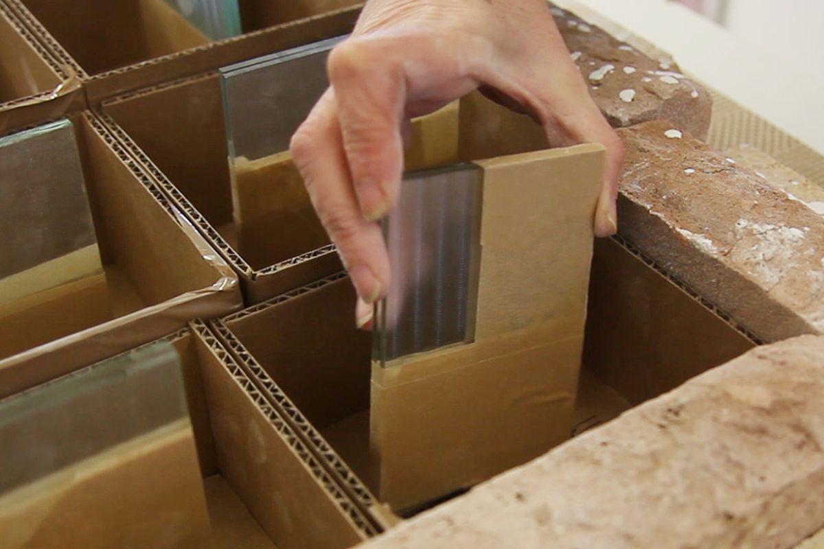 Make sure that the pieces are centered and straight. A later correction of the cement is no longer possible. Fix the glass pieces with tape to the bottom of the mold.