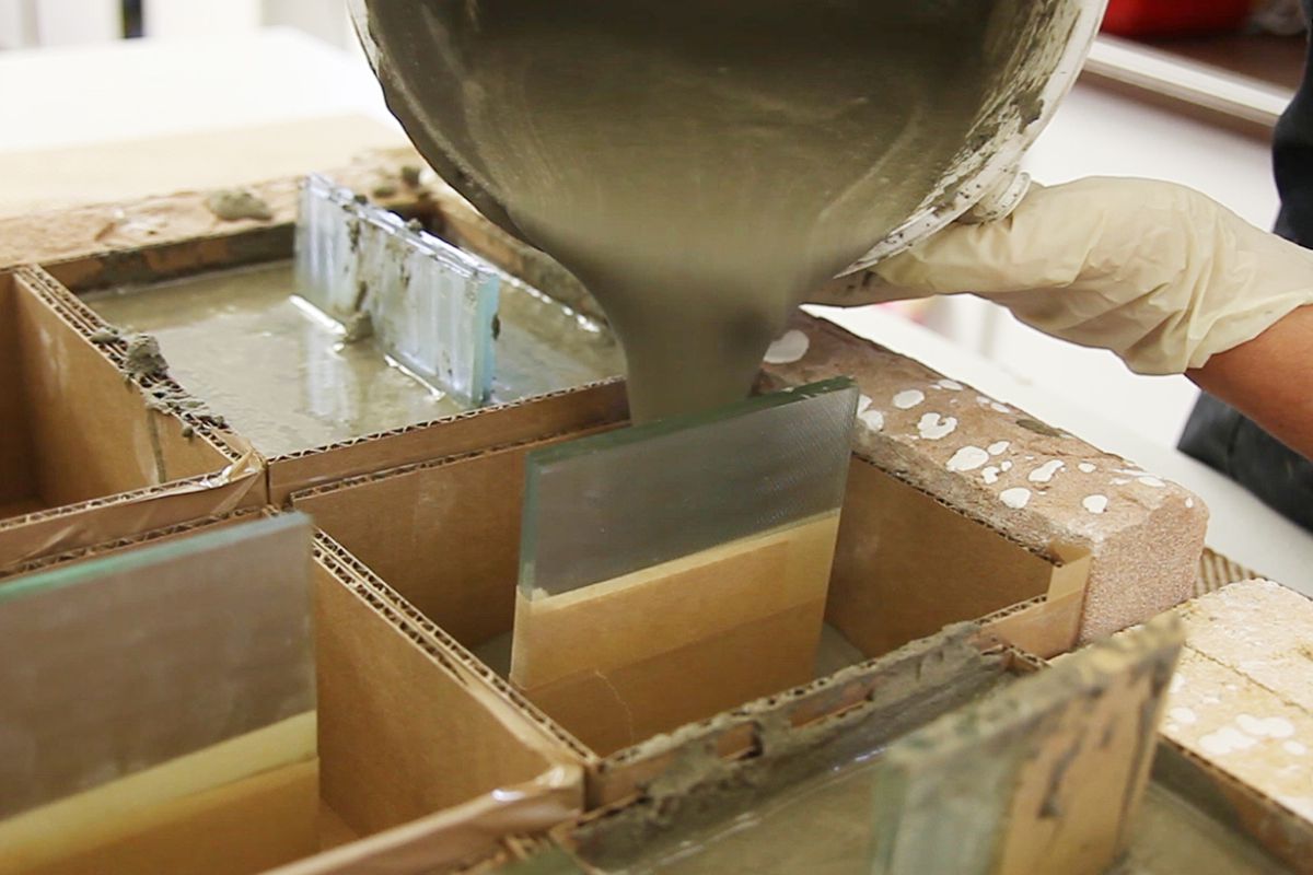 Now carefully pour the cement into the mold. Make sure that it is evenly distributed.