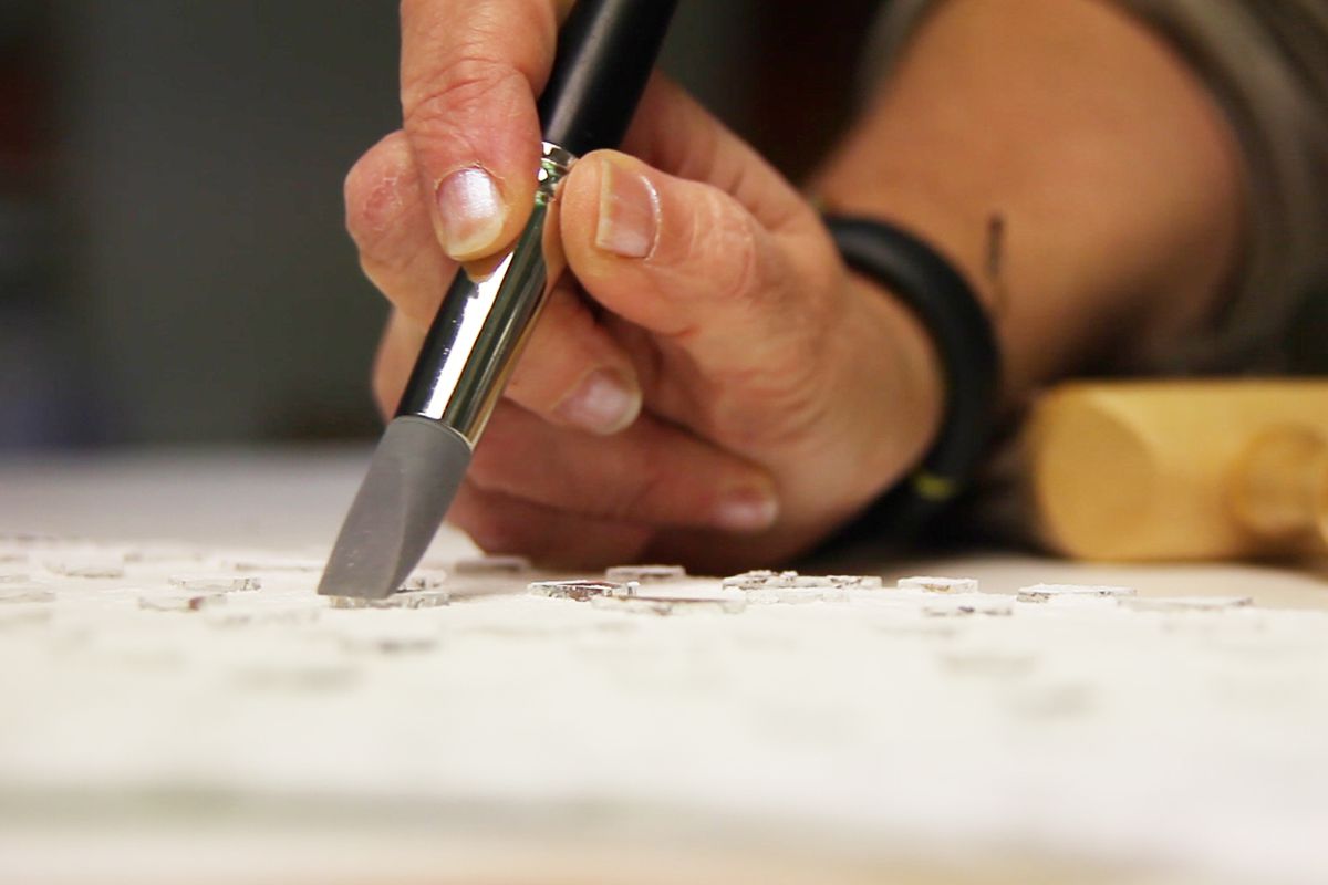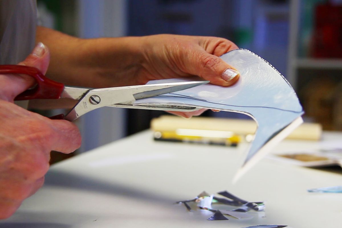 Gold and silver foil can be easily cut with a sharp cutter knife or scissors. Place the foil between 2 sheets of paper and then cut out the foil in combination with the paper. You simply remove the foil with tweezers.