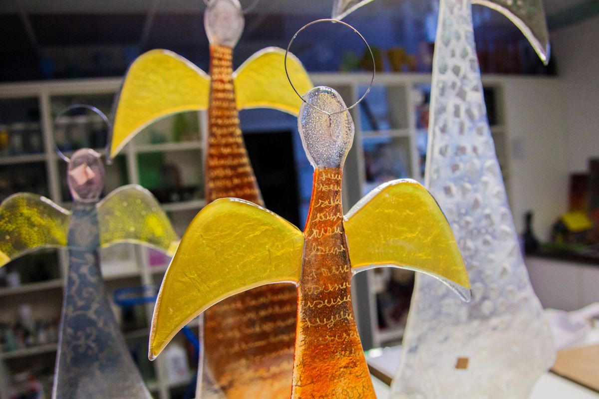 The metal bases can also be used for an appealing transition from the glass angel to the cement foot.