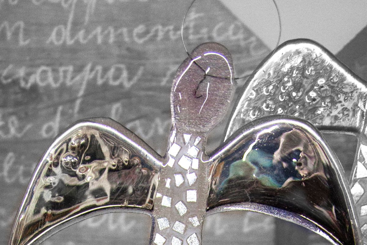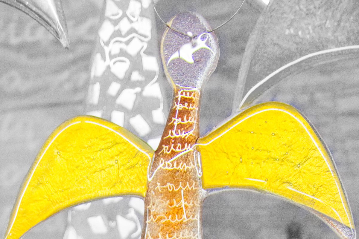 We chose a high-quality precious metal for this angel, the Japanese silver foil. This in combination with the reactive glass 1015-30F on the surface results in the great gold tone!