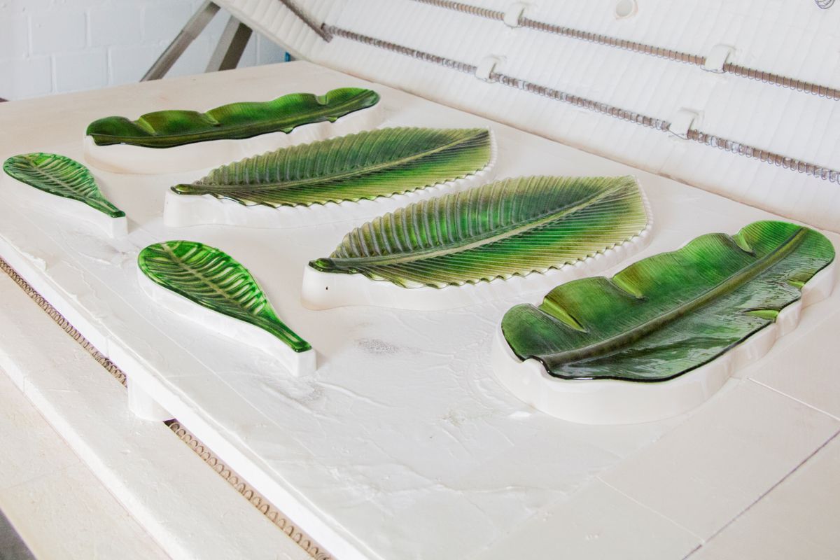 Take the leaves out of the kiln. If a leaf has become a little too light, too yellow or not intense enough for you, simply powder it over again, put it back on the mold and fuse it again.