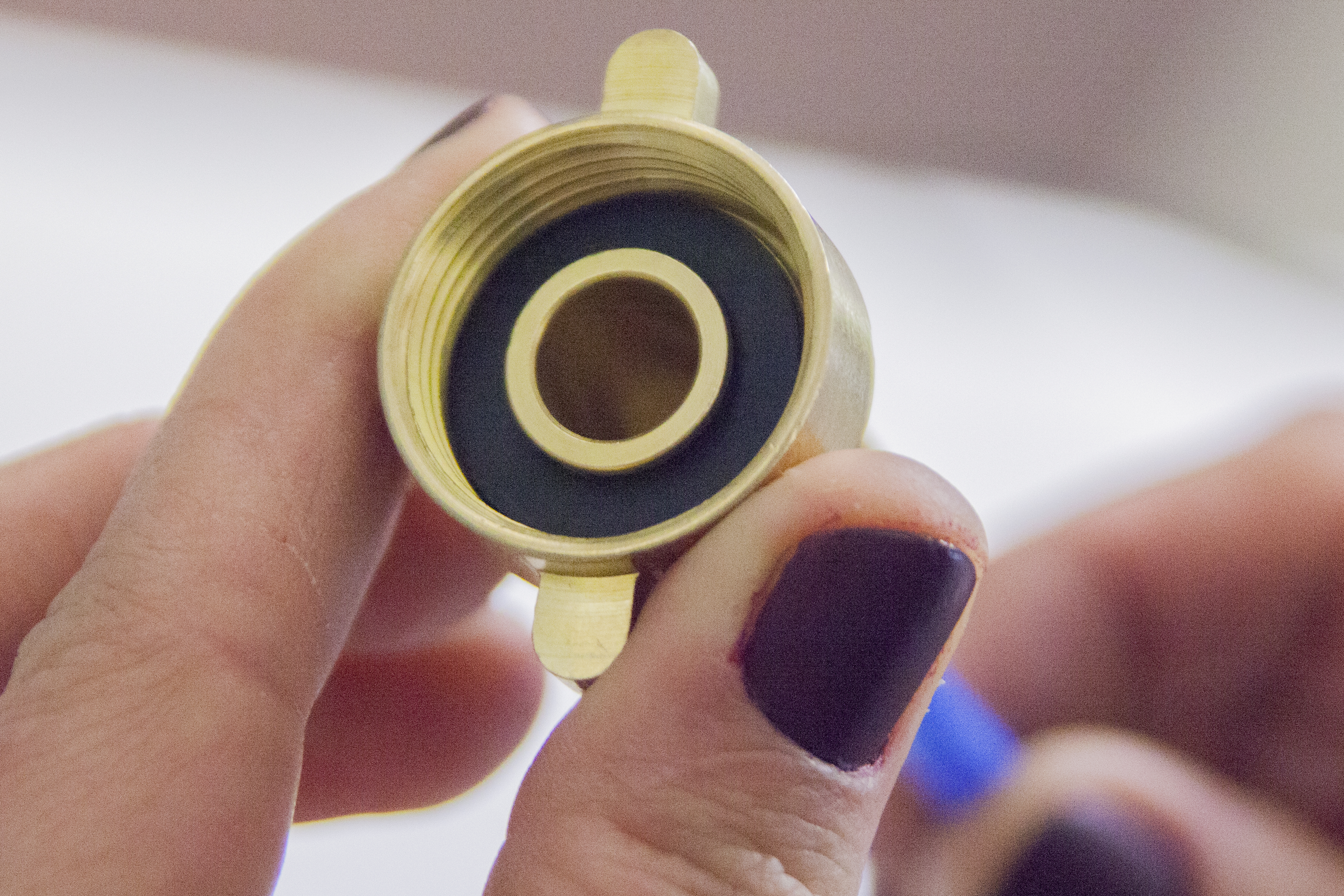 On the spindle there is a water connection with a union nut on the side. This please turn down, pass the existing blue water hose through the union nut and plug it into the side water connection. Then screw on the union nut again. The same thing is done at the existing water connection, which is turned on the faucet.