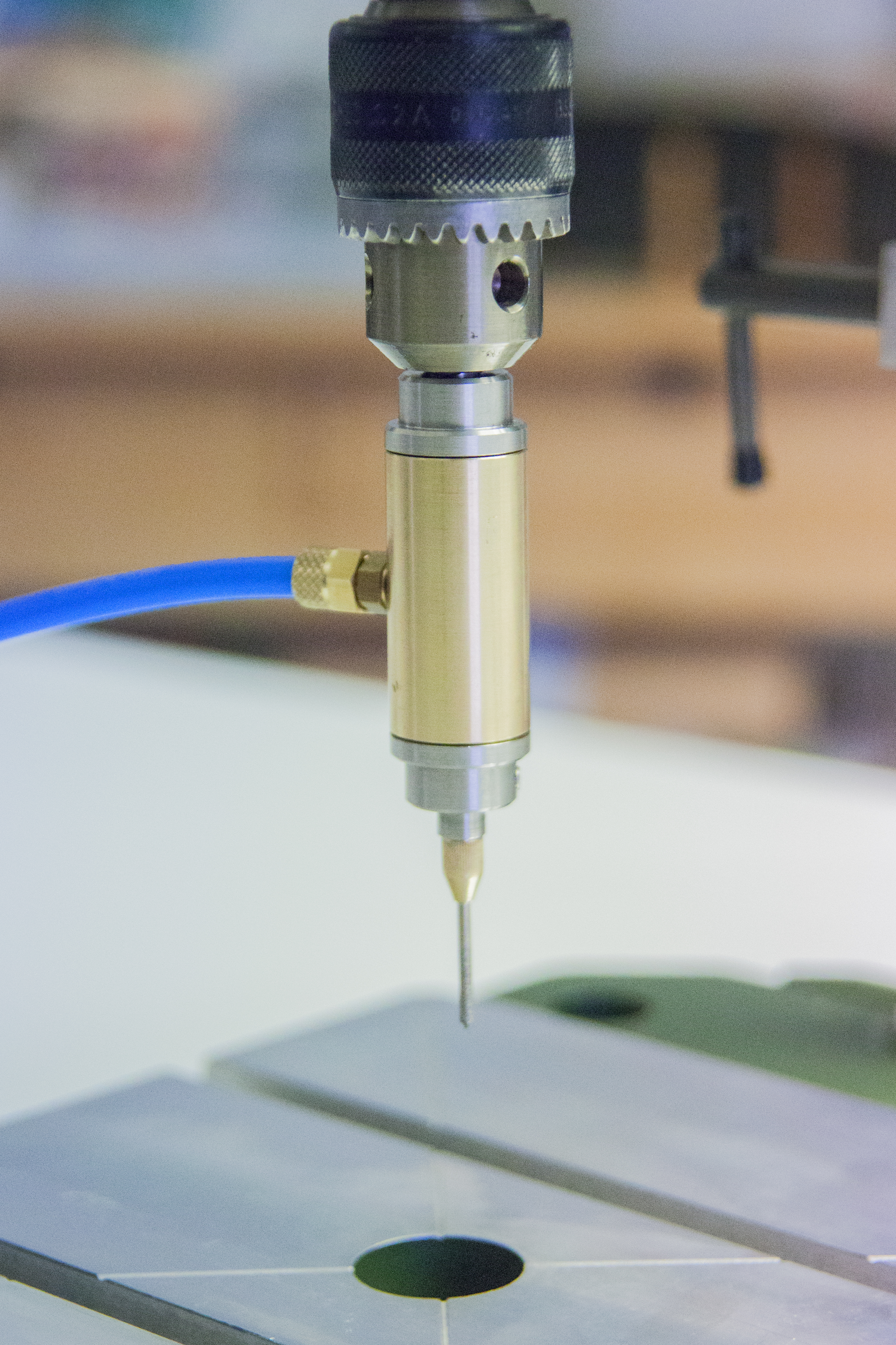The ejector needle is usually supplied in the appropriate length in the drill. Nevertheless, drill and ejector are two different items. Slight differences in length with the same drill diameters are possible due to the production. It is possible that an ejector needle has not been „tuned“ to the drill bit. If so, please cut the needle so that it is about 1 to 2mm longer (when inserted) than the drill, and looks out.