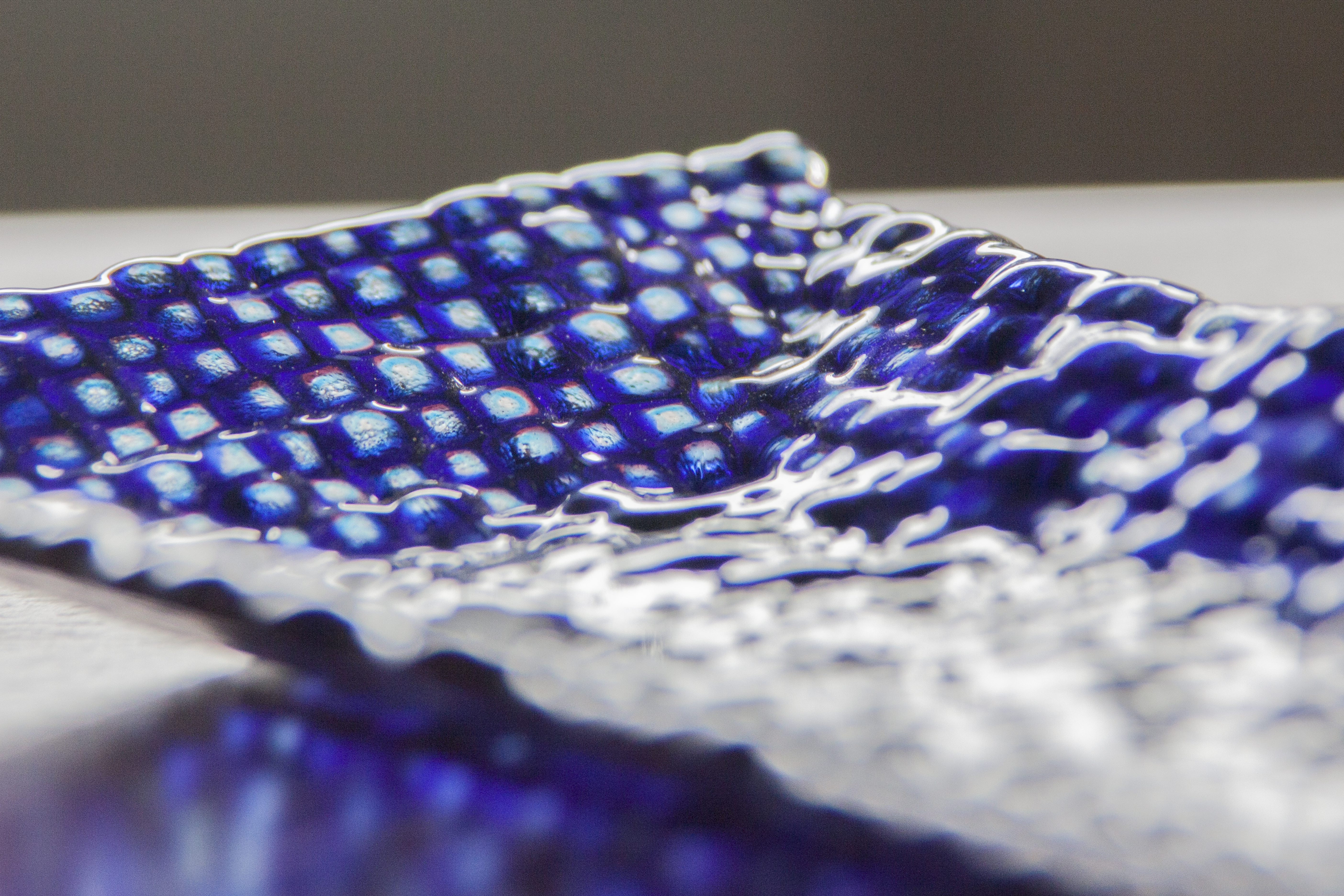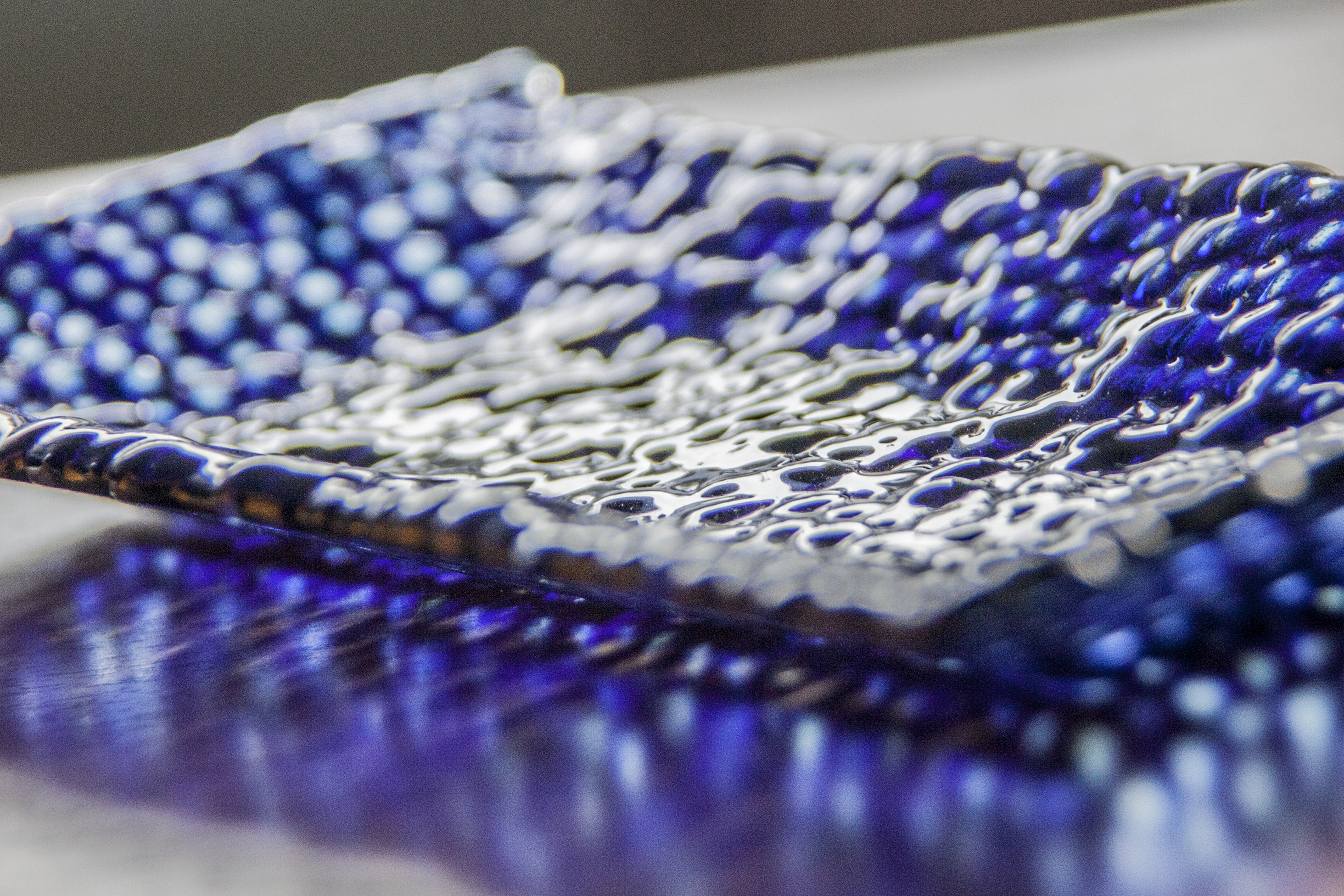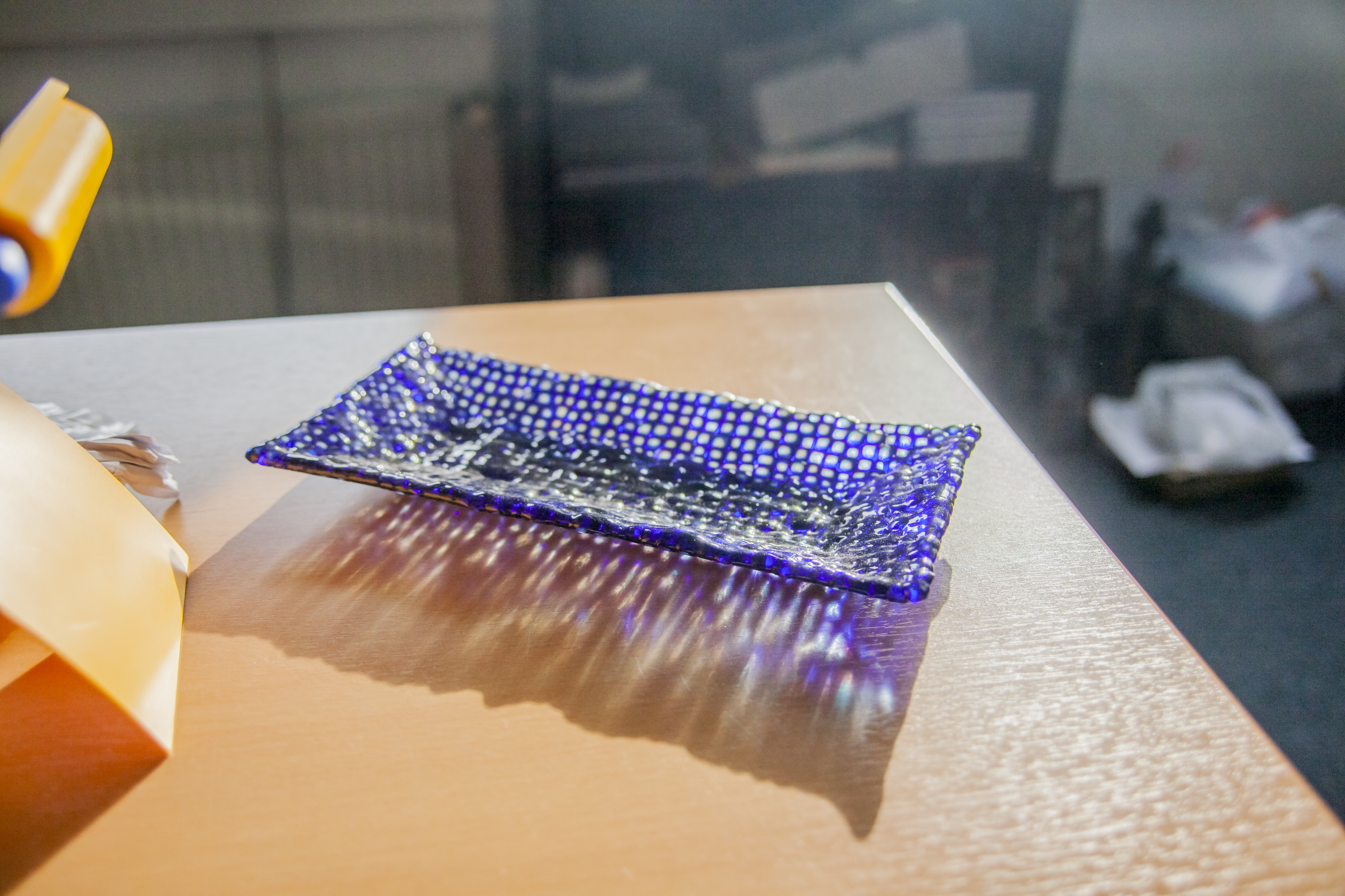 Now you can place the small pieces directly to the mold. Desing a pattern, create some lines - as you wish. You can fix the pieces with a little bit of fusing glue (Glastac 3562800 / Elmers Glue 3562605)