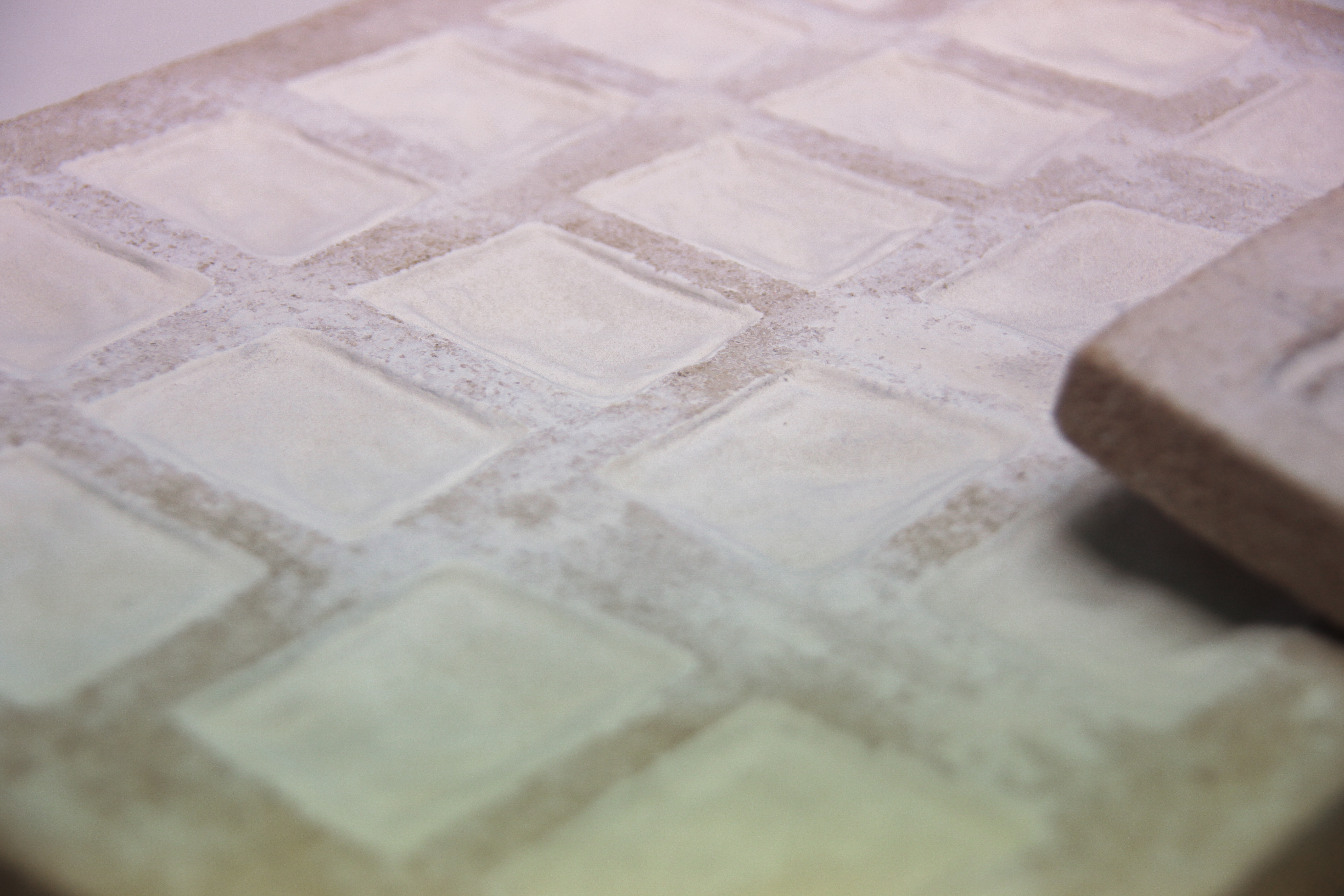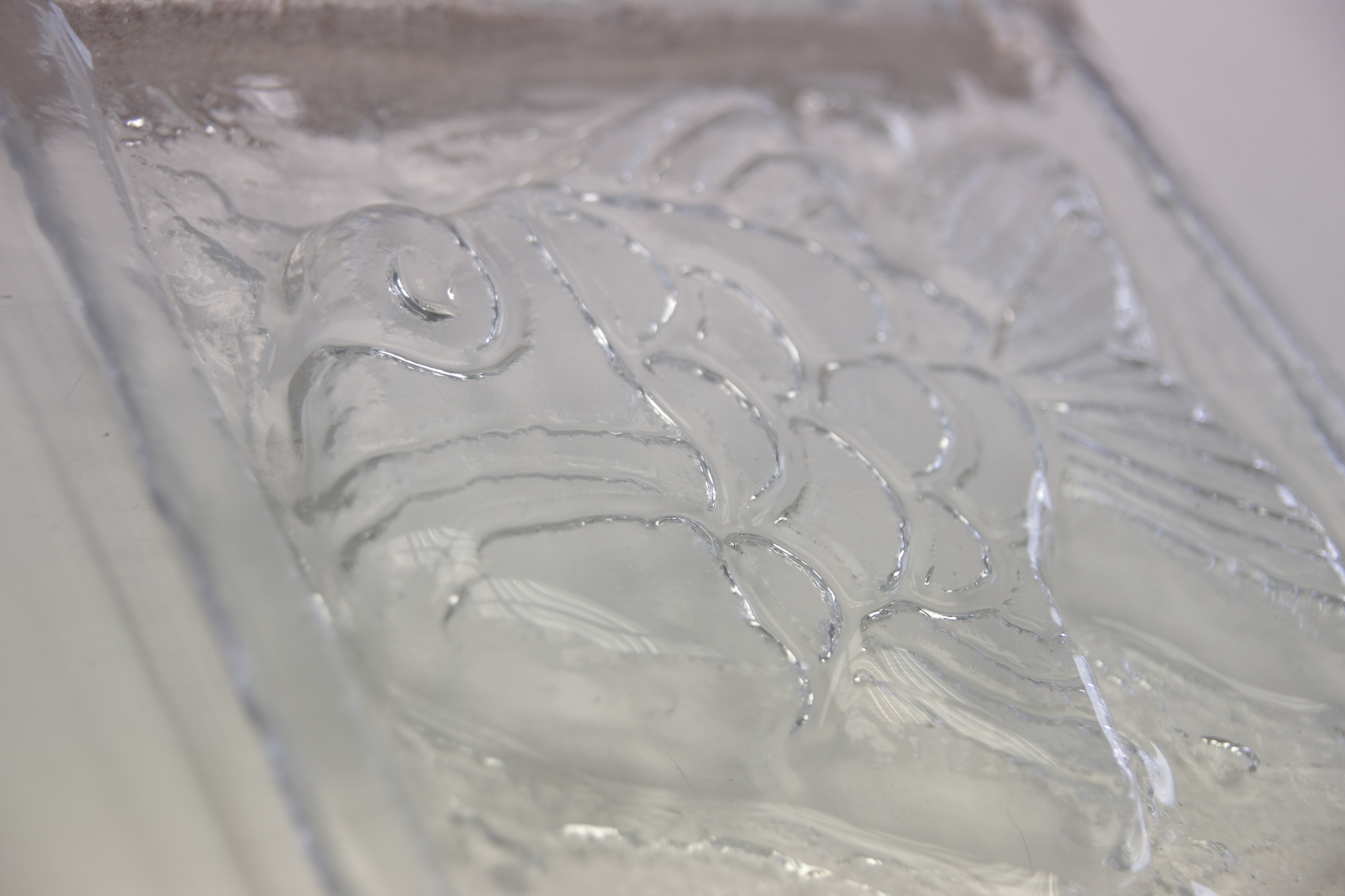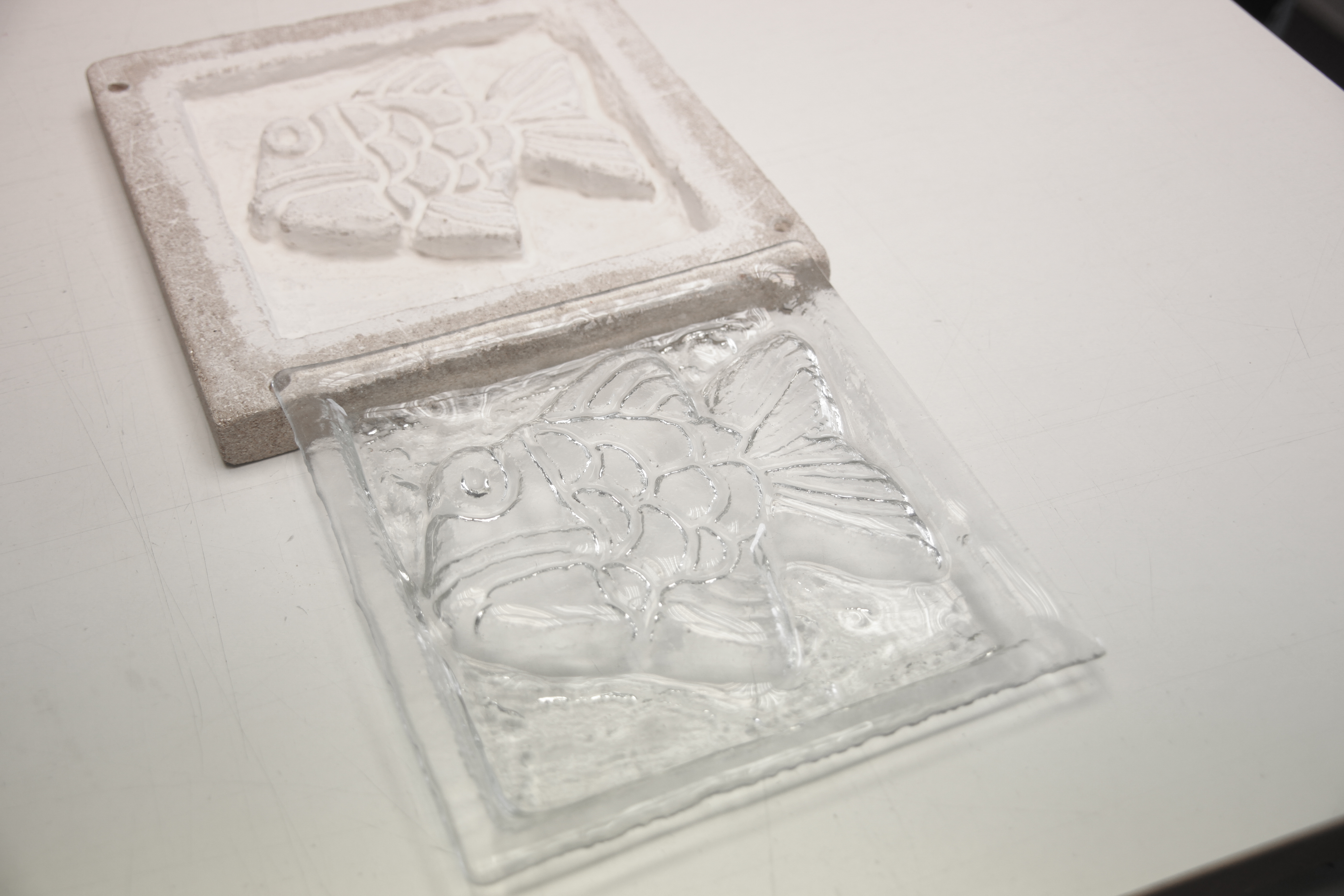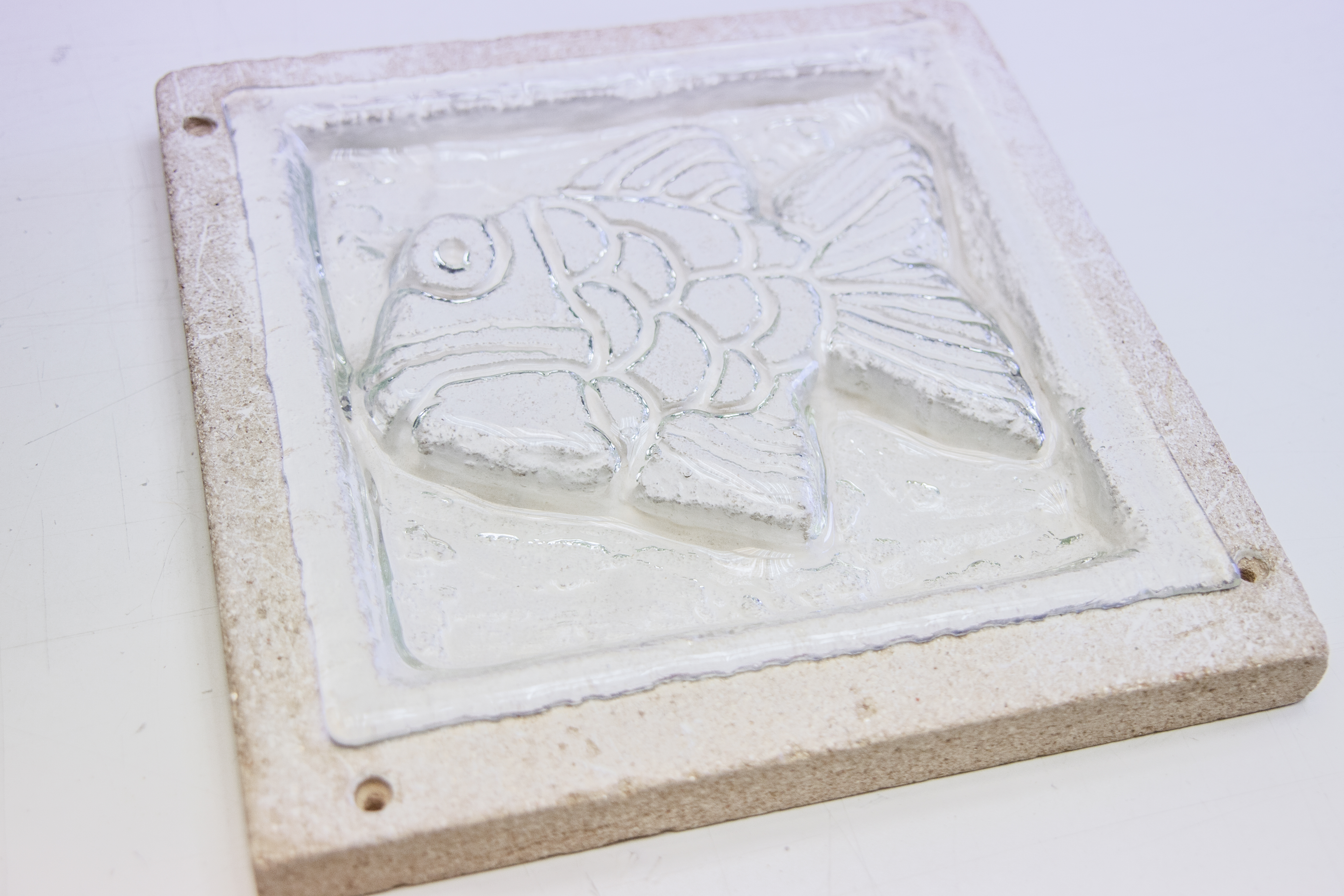 3. You will work here in a negative way- the underground is the upper surface after fusing. If you need some help to see how the glass will be: take some dough, press it into the mold and take it out carefully. So you can see how the surface will be!