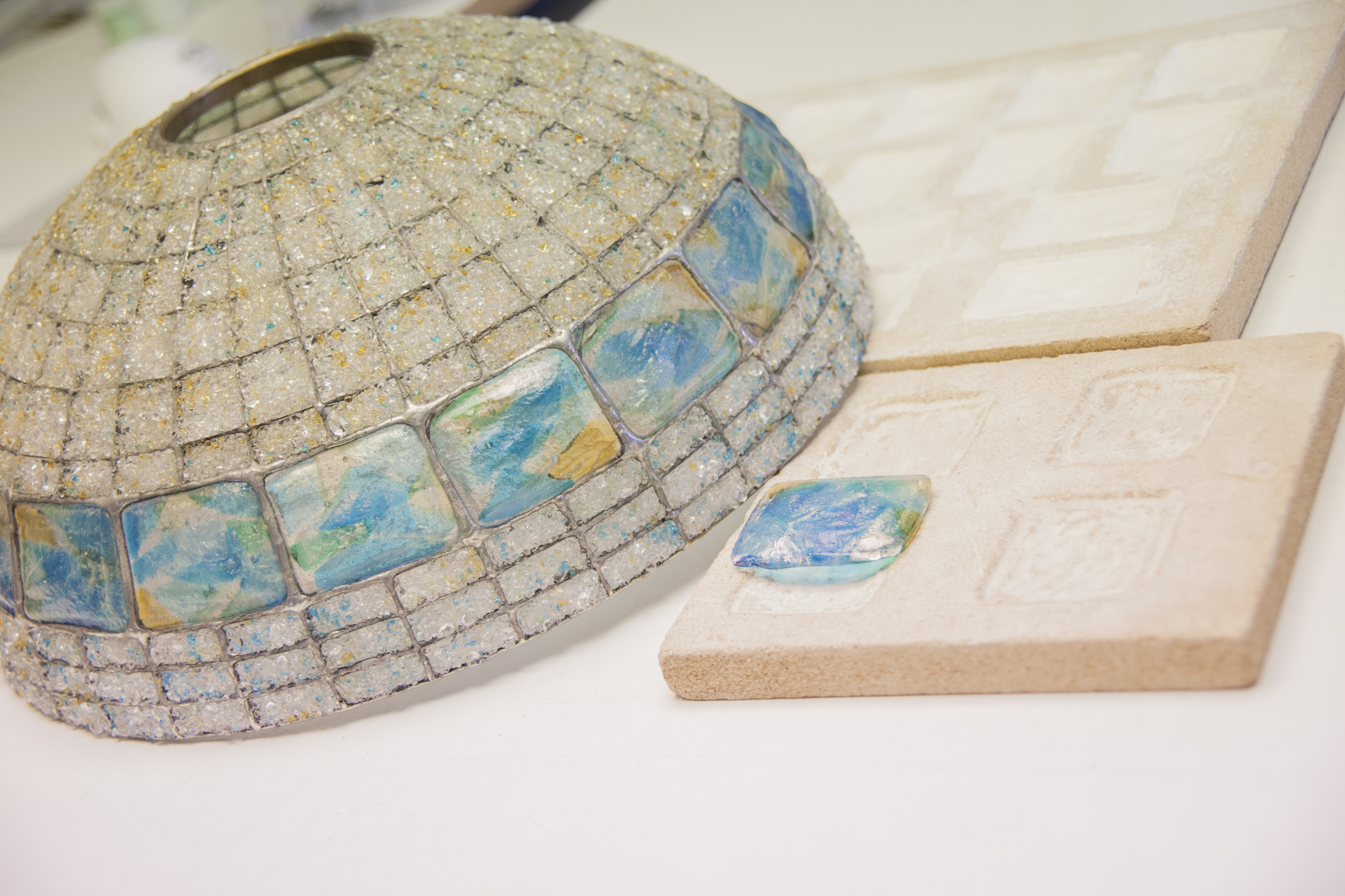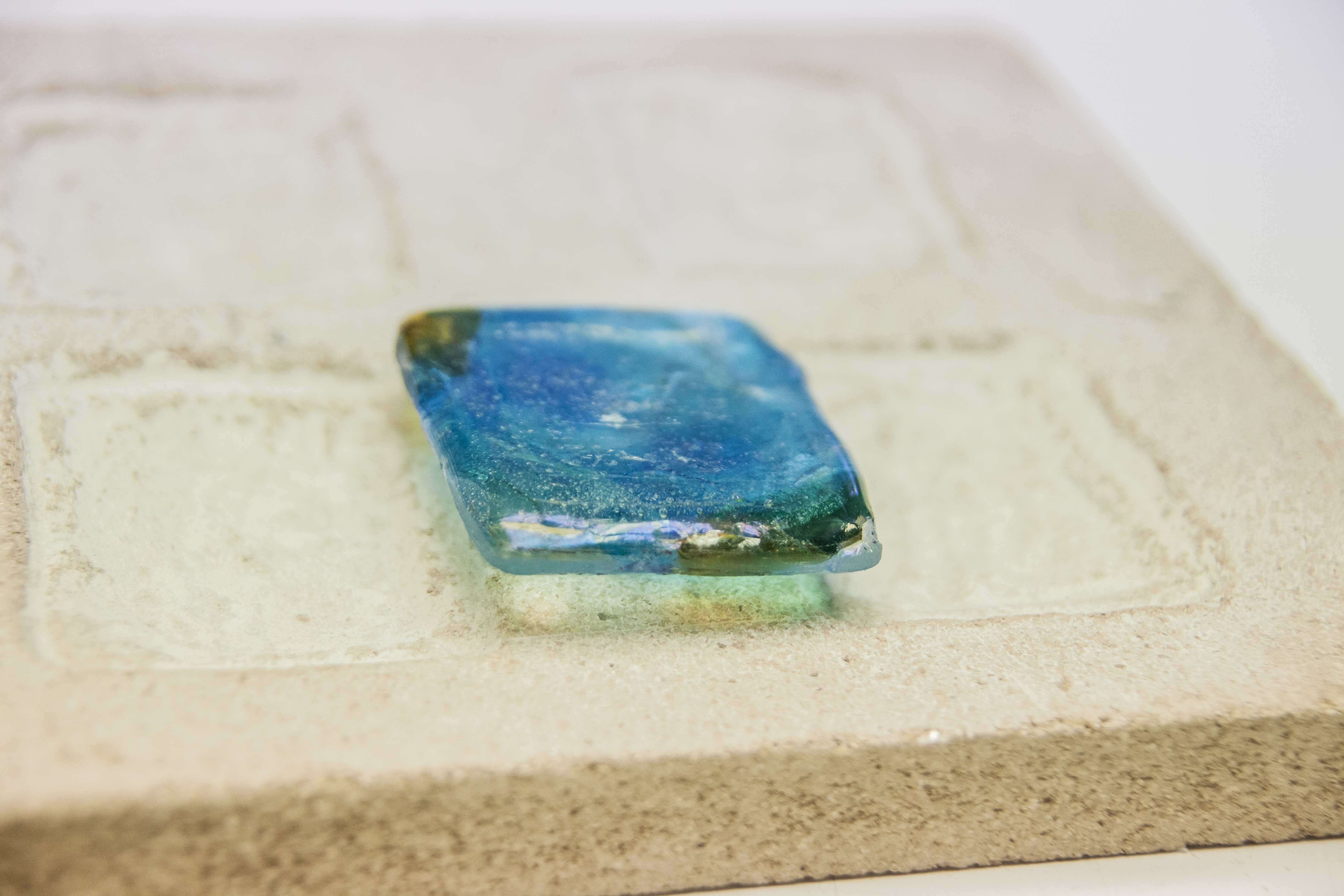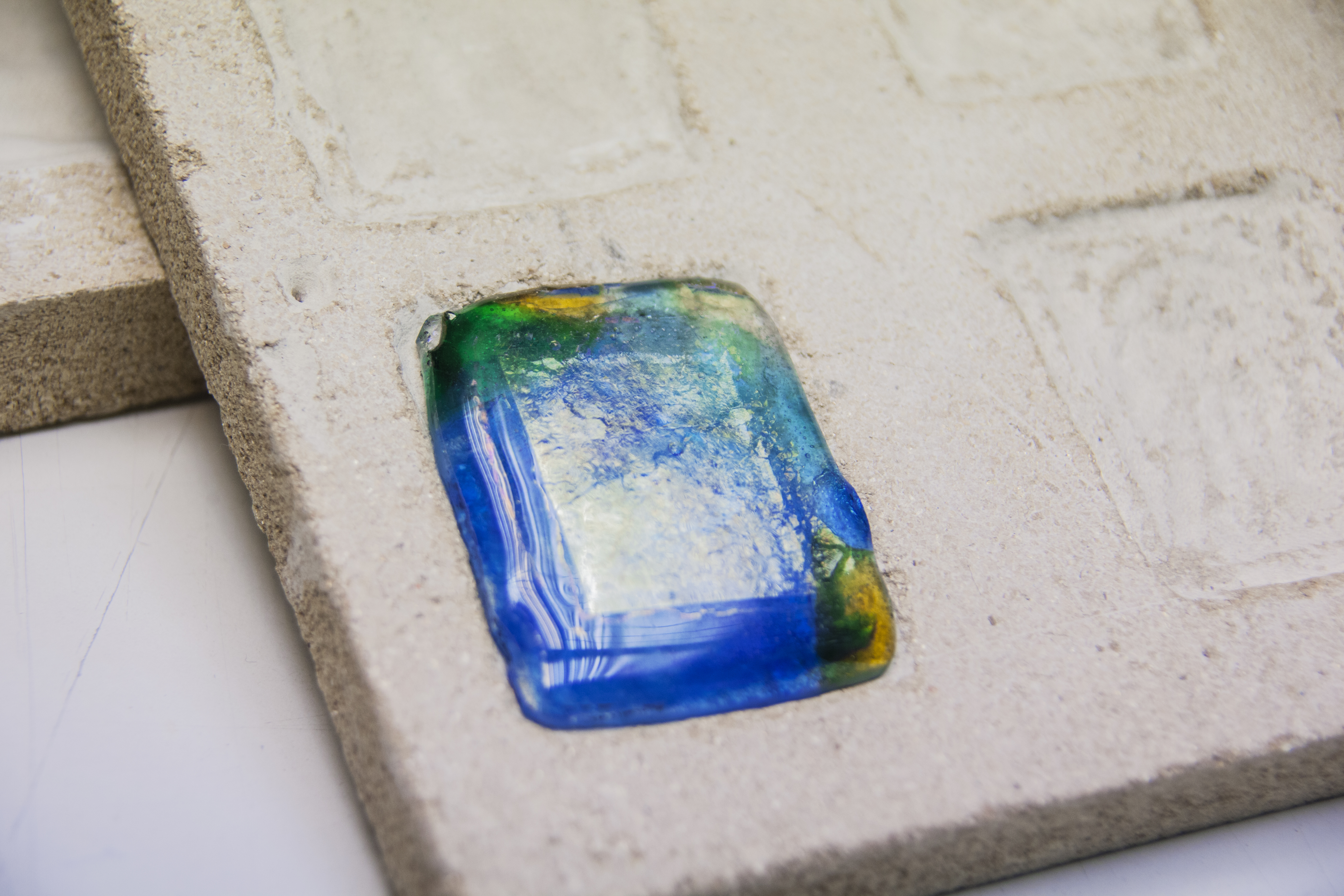 5. Cut up the Fusing glass with a glass cutter/ pliers and fill a small amount into each part.